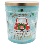 Tins are the lifeblood of our business. An amazing gift for any occasion, with a large assortment of sizes and options to choose from. Here are just a few of the designs and sizes we carry. We also have smaller sized 1 gallon and 1/2 gallon tins. All of the tins pictured on this page (2 gallon, 3.5 gallon, 6.5 gallon) can be filled with 1, 2, or 3 of any flavor you choose. You can go with the traditional Butter, Cheese, Caramel combo or substitute any flavor you choose, or just fill the whole thing with your favorite flavor!